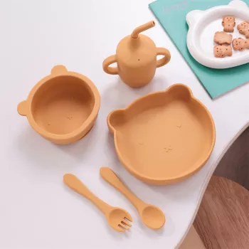 5PCS Silicone Baby Feeding Set with Bear Plate, Spoon & Straw Cup